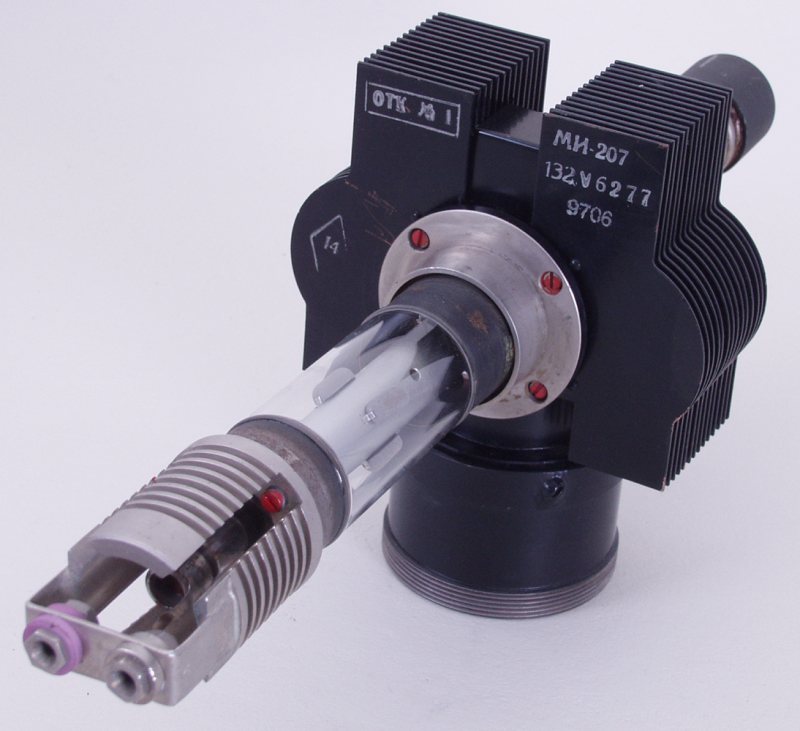 МИ-207 магнетрон импульсный электронный прибор, генерирующий микроволны при взаимодействии потока электронов с электрической составляющей сверхвысокочастотного поля в пространстве, где постоянное магнитное поле перпендикулярно постоянному электрическому полю.