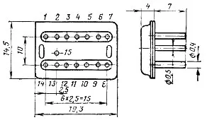 Корпус металлостеклянный прямоугольный 151.15-2, масса не более 3 г.