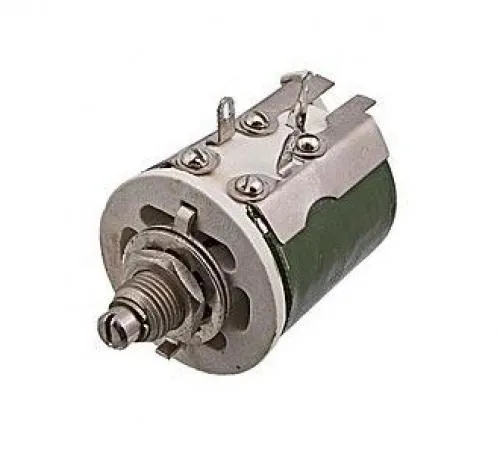 ППБ-25Д-25вт 22 кОм резистор переменный проволочный бескаркасный регулировочный для навесного монтажа, одинарный, однооборотный с круговым перемещением подвижной системы и вариантом исполнения вала типа "Д". Предназначен для работы в электрических цепях постоянного и переменного токов частотой до 1000 Гц.