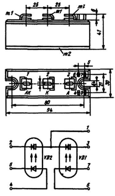 Обозначение типономинала и схемы соединения оптотиристоров приводится на корпусе.