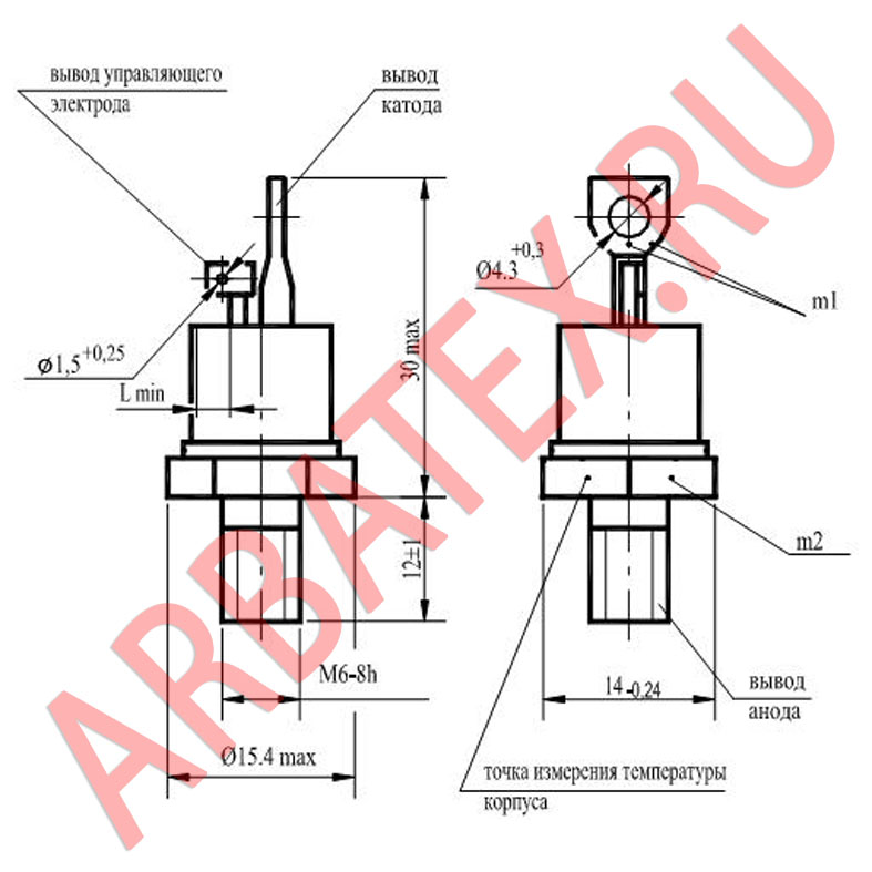 Масса тиристора не более 6 г.