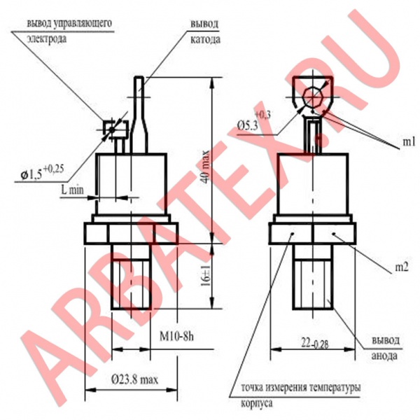 Масса тиристора не более 6 г.