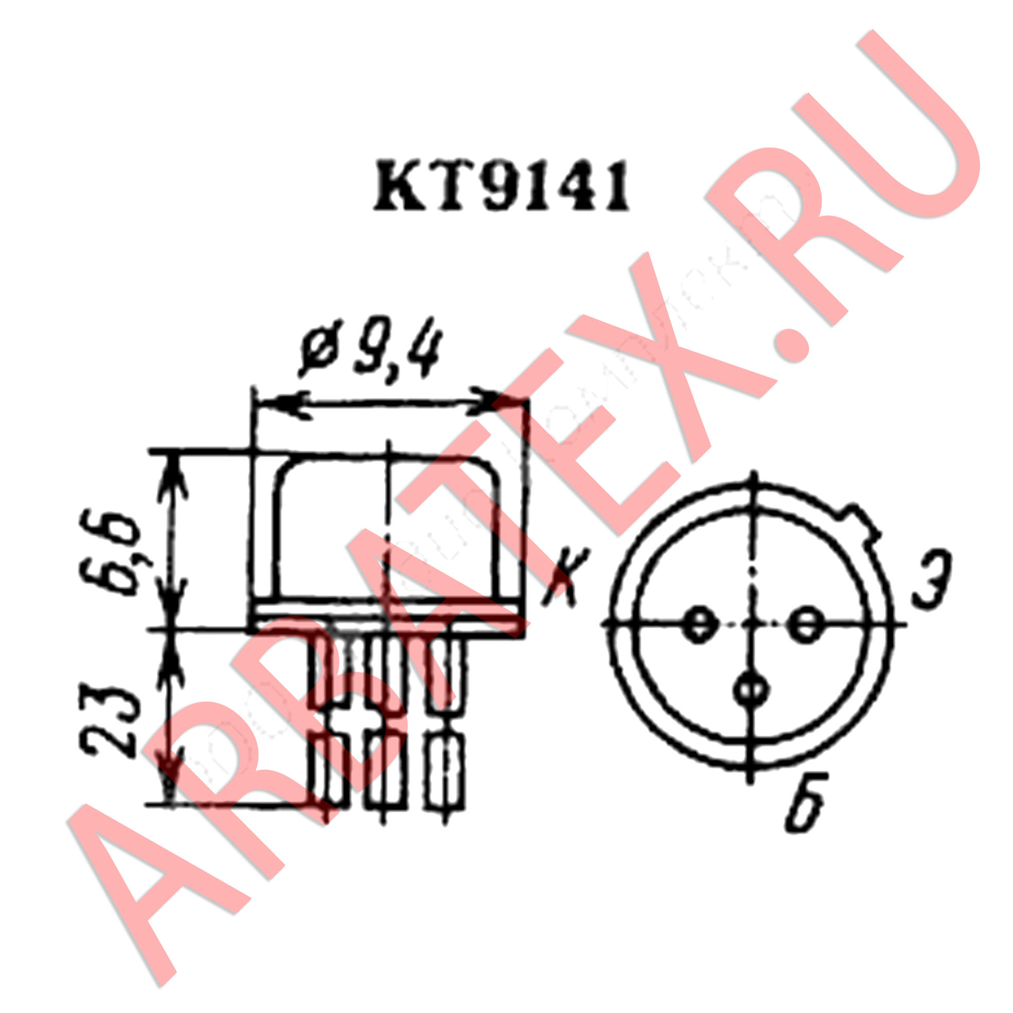 КТ9141А транзистор радиоэлектронный компонент из полупроводникового материала, обычно с тремя выводами, позволяющий входным сигналом управлять током в электрической цепи для усиления,применяется для генерации и преобразования электрических сигналов.